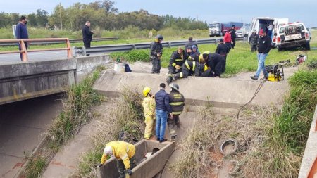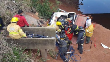 El accidente se produjo en el kilómetro 131, cuando el conductor perdió el control del camión y rompiendo la baranda de defensa del puente cayó en el afluente de los padres.