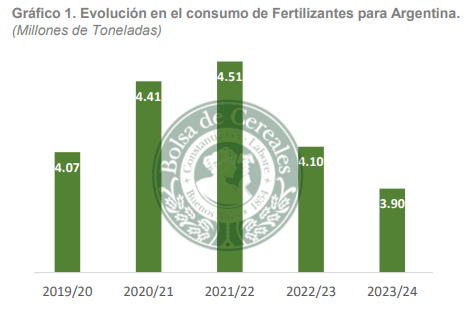 📊 Consumo de Fertilizantes en Argentina: En la campaña 2023/24, el consumo total de fertilizantes fue de 3,90 millones de toneladas, el valor más bajo registrado en las últimas cinco campañas para los seis principales cultivos extensivos de Argentina.#Fertilizantes pic.twitter.com/Ipcvs7VcP8