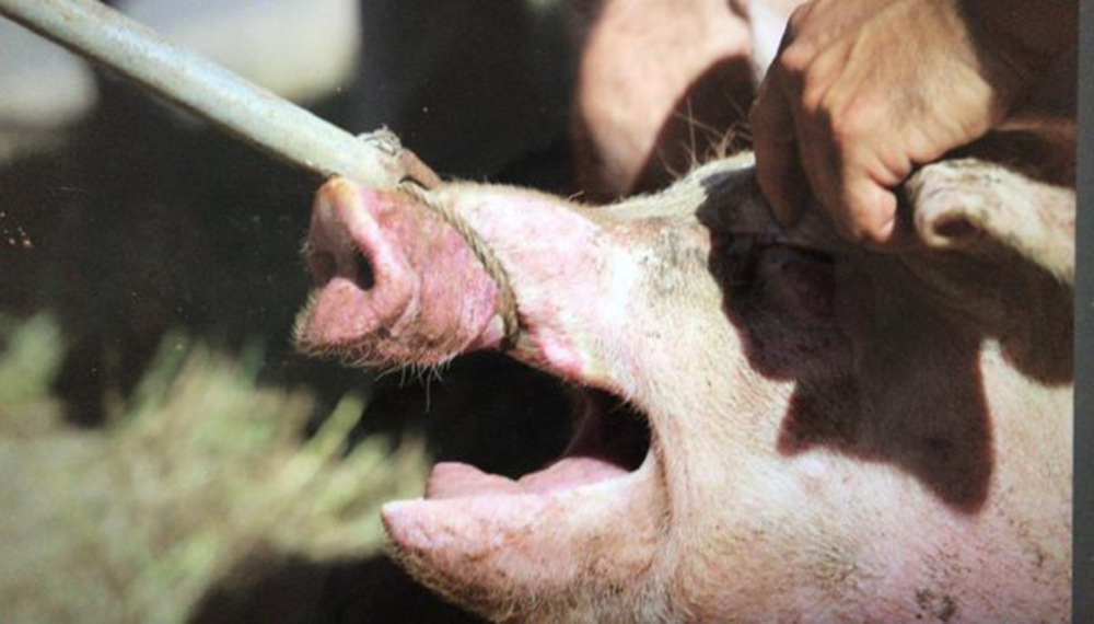 “Estaban estresados, son cerdos de seis meses. Algunos estaban muertos, otros moribundos y los que estaban vivos tenían que trasportarlos desde el fondo del camión a otro donde los iban a llevar nuevamente al matadero. Para eso los ataban de la nariz con cables de acero y los tiraban. Insistíamos que nos entreguen algún animal”, detalló Blanco.