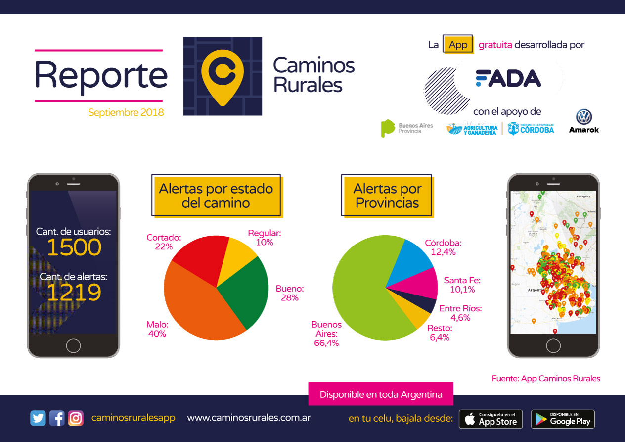 Así lo reveló el último informe de la Fundación Agropecuaria para el Desarrollo de Argentina (FADA), que dio a conocer los números de la App de Caminos Rurales que lanzó en septiembre de 2017.