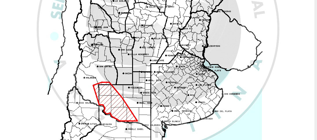 El Servicio Meteorológico Nacional emitió un alerta a muy corto plazo por tomrentas fuertes para Mendoza y La Pampa.
