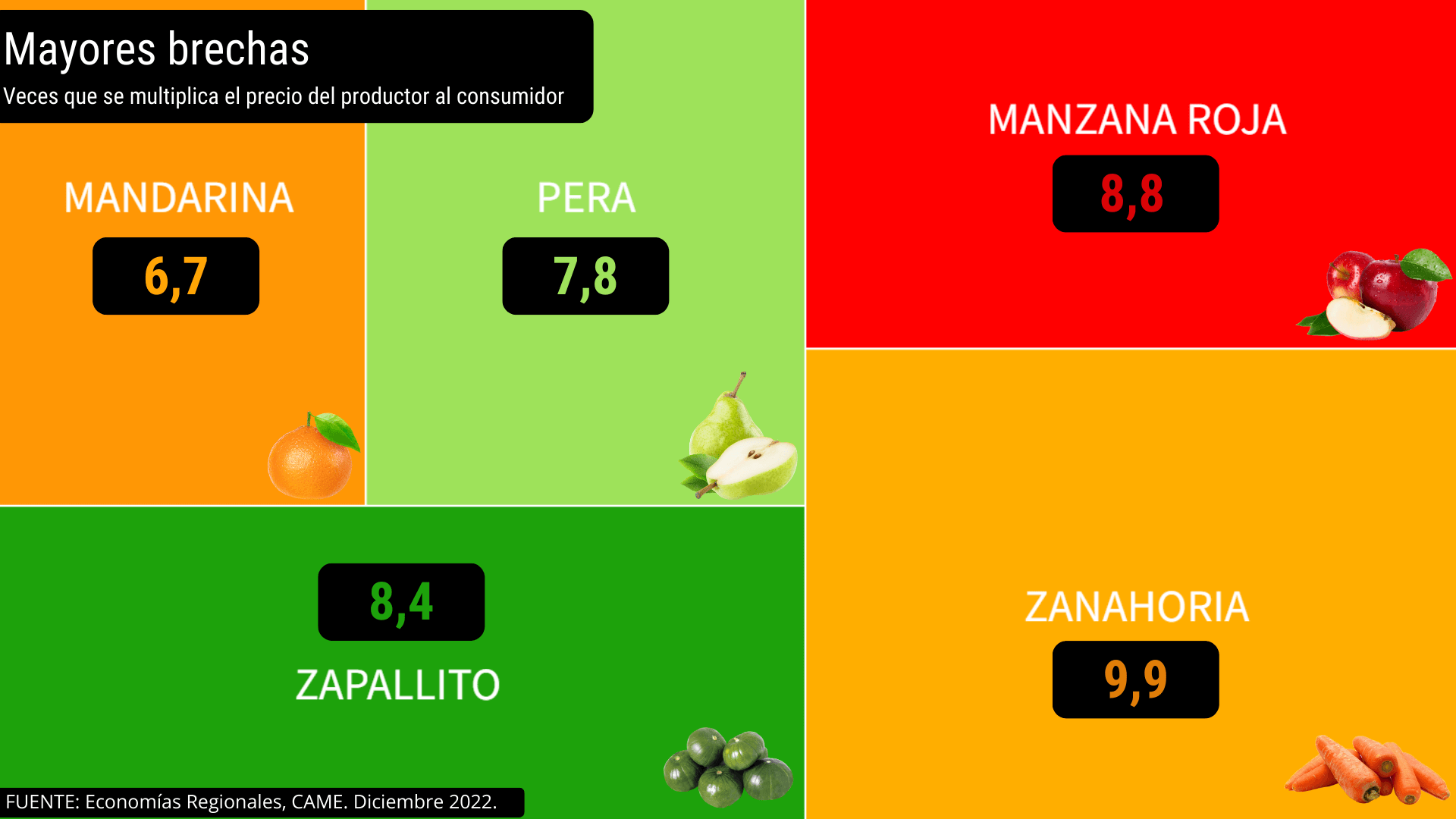 Entre los cinco productos que presentaron mayor diferencia entre los precios de origen y destino desde CAME hicieron una clasificación: