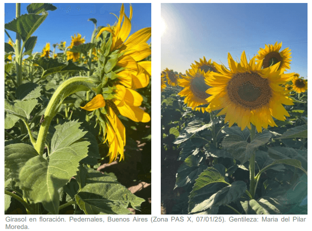 Por otro lado, los lotes con fechas de siembra intermedia presentan estrés hídrico y pérdida de potencial de rinde, debido a que están atravesando la floración en un contexto de altas temperaturas y escasez de agua.