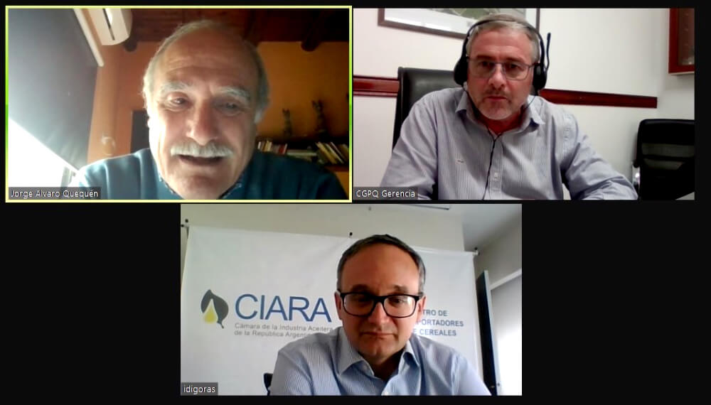 En este sentido, el presidente del Consorcio de Gestión de Puerto Quequén, Jorge Alvaro, se reunió de manera virtual con el presidente de la Cámara de la Industria Aceitera de la República Argentina y el Centro de Exportadores de Cereales (CIARA-CEC), Gustavo Idígoras.