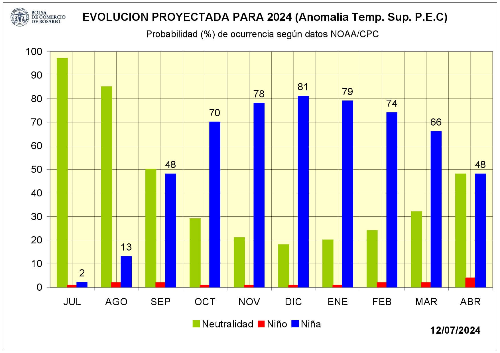 Según el informe, “La Niña” durará menos de lo que se esperaba tres meses atrás. En el mes de abril, los estudios marcaron que las probabilidades de Niña bajan al 48%, igualándose con las de Neutralidad.