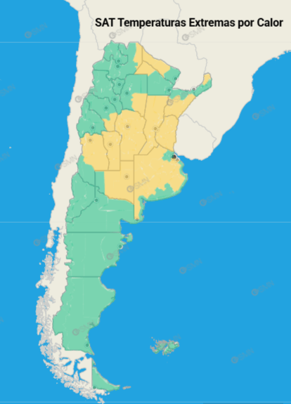Este lunes, el Servicio Meteorológico Nacional (SMN) puso bajo alerta amarillo por temperaturas extremas a toda la zona núcleo y la región pampeana, pero también a zonas de Cuyo y del NEA y NOA.