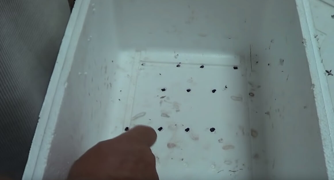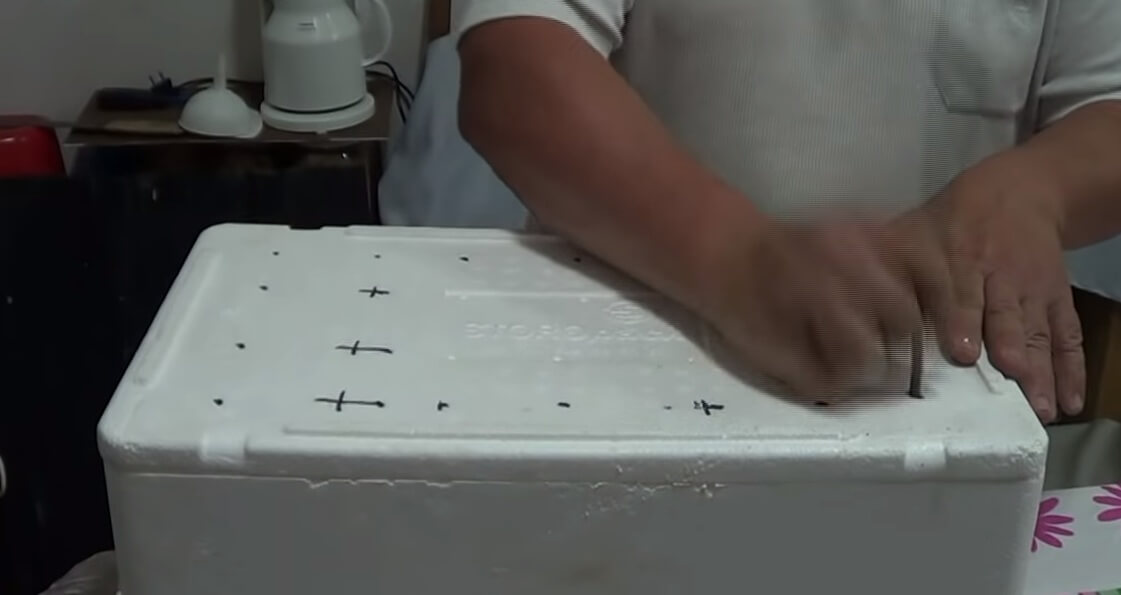 Como primer paso, hacemos unos agujeros en la tapa para que transpire el hábitat de las lombrices y salga el calor de la fermentación del humus.