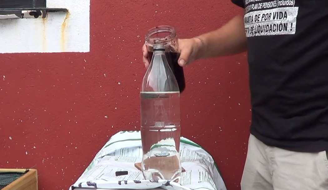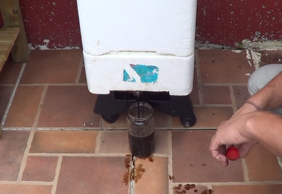 Finalmente sólo queda poner las lombrices y obtendremos continuamente y dependiendo de cuántos hábitats apilemos, algo más de 1 o 2 litros de abono líquido por semana.