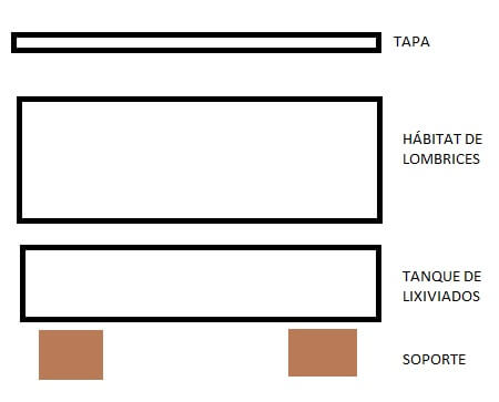 La vermicompostera estará compuesta por 4 partes. La base con los tacos, el tanque de lixiviados, el hábitat de las lombrices y la tapa.