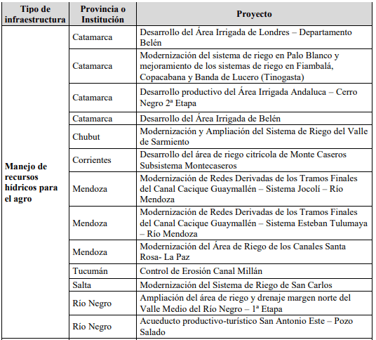 - Modernización de irrigación y drenaje para el sector agropecuario, incluyendo análisis sobre la capacidad hídrica de las cuencas, considerando escenarios de cambio climático futuro.