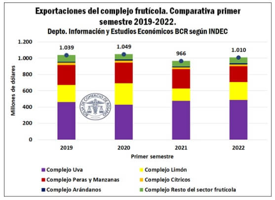 Durante el primer semestre de 2022 el complejo frutícola exportó 1.000 millones de dólares.