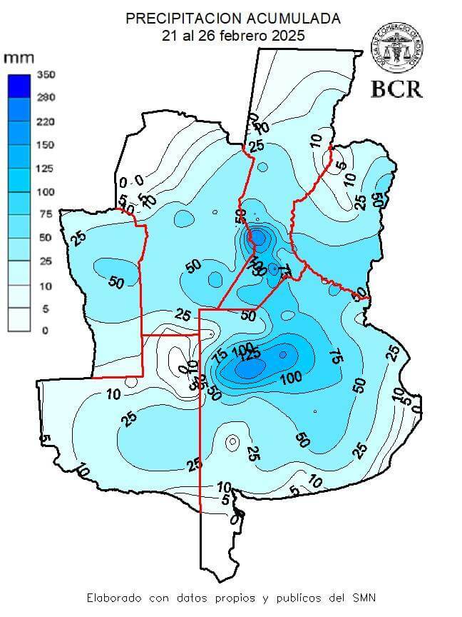 🌧️Últimos registros de las precipitaciones acumuladas en toda la provincia de Córdoba.