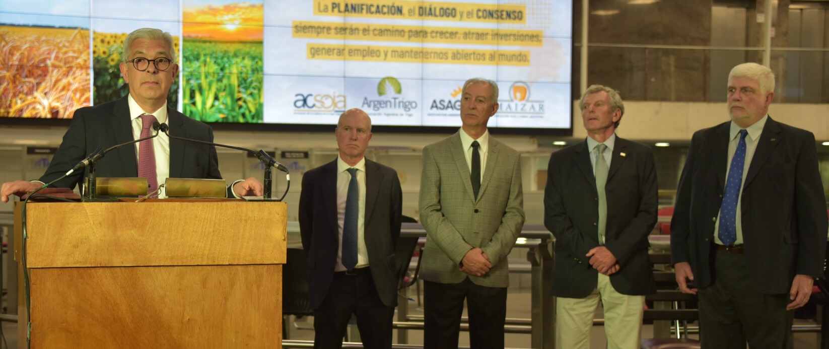 Allí afirmó que, “la plataforma del crecimiento y del desarrollo es el diálogo”. Durante el acto por el cierre del año en la Bolsa de Cereales de Buenos Aires dio sus palabras junto con los presidentes de la Asociación de la Cadena de la Soja Argentina (Acsoja), Argentrigo, la Asociación de Maíz y Sorgo Argentino (Maizar) y la Asociación Argentina de Girasol (Asagir).
