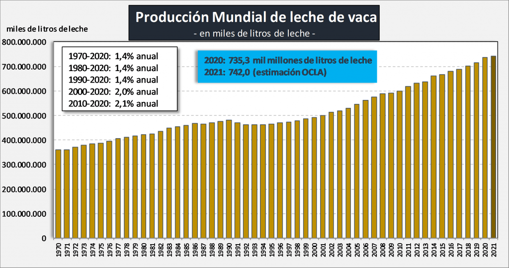 El volumen alcanzando fue de 910 millones de toneladas, y según el Observatorio de la Cadena Láctea Argentina (OCLA), “el crecimiento se debe principalmente a la tendencia dinámica de la producción de leche de vaca y de búfala en la India“.