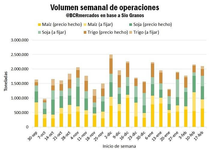 En concreto, tomando como referencia los datos de la plataforma Sio Granos, desde la oficialización de la medida el volumen promedio negociado semanalmente de trigo, soja y maíz (considerando operaciones a precio hecho y a fijar) fue de 1,98 millones de toneladas (Mt), un 8,5% más que en el promedio de las 10 semanas previas.