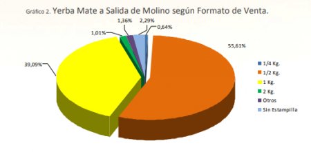 Por otra parte, el instituto remarca que el envase más elegido es el de medio kilo, teniendo un 55,6% de las salidas de molinos al mercado interno. Es seguido por los paquetes de un kilo, que se ubicó en segundo lugar con el 39%; los de dos kilos recibieron un 1%, y 0,64% los de cuarto kilo.