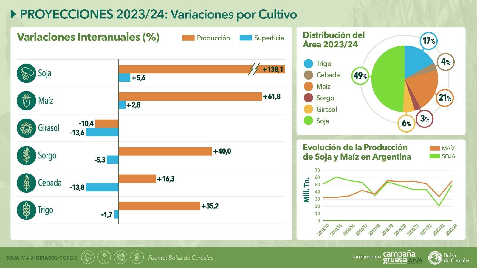 Esta cifra coincide con la proyección que dio a conocer el último martes la Bolsa de Comercio de Rosario: 136 millones de toneladas, un 70% más.