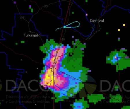 De acuerdo con la información tomada por los radares, se observó que lluvias moderadas e intensas en áreas cultivadas San Carlos, Tupungato, Tunuyán con caída de granizo en San José, Villa Bastías, Ciudad de Tupungato, La Arboleda, EL Zampal, Cordón del Plata, Zampalito, Colonia Las Rosas, Vista Flores y La Primavera corrían riesgos de daños por efecto del temporal.
