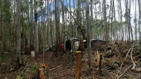 Las personas trabajaban en la tala de eucaliptos y habitaban en carpas precarias, hechas con toldos de nailon negro y puntales de madera. Además, dormían sobre colchones, que estaban arriba de troncos y comían en condiciones de insalubridad.