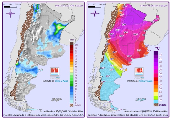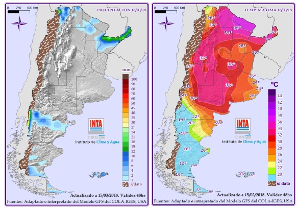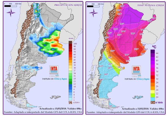 Un frente frío se desplazaría sobre el centro-este del país con abundante nubosidad, vientos del sector norte que rotarán al sur con posterior marcado descenso de temperaturas y provocando lluvias y tormentas de variada intensidad; algunas podrían ser localmente intensas con abundante caída de agua y ráfagas sobre Bs. As. (este), Entre Ríos y Santa Fe (sur). Aún en el norte del país habría tiempo caluroso y húmedo con vientos del sector norte, ascenso de las temperaturas y nubosidad variable; tiempo inestable se presentaría en el extremo noroeste. En la Patagonia centro y norte habría tiempo bueno con vientos del sudoeste y ascenso de las temperaturas; en el extremo sur se prevé tiempo
