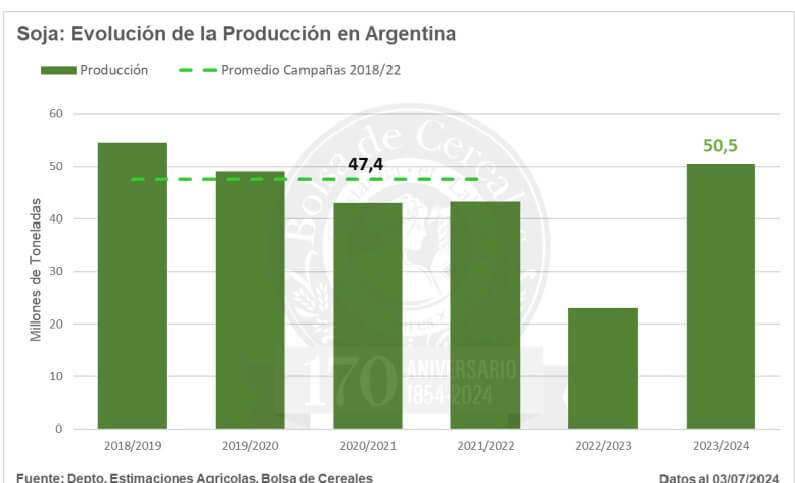 Este volumen representa un incremento del 6% con respecto al promedio de producción del período 2018/22, que se ubicó en 47,4 millones de toneladas.