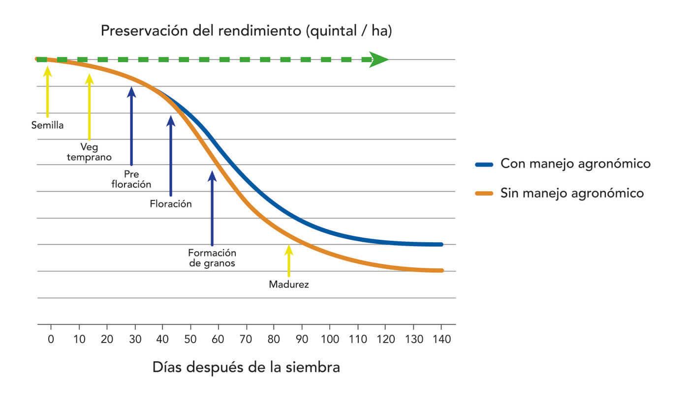 El cuadro siguiente refleja lo anteriormente mencionado y también manifiesta que cada intervención agronómica puede ayudar a la planta a expresar su potencial.