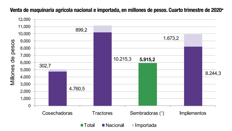 Respecto a la facturación de sembradoras, implementos y cosechadoras el aumentó del último trimestre de 2020 fue del 148%, 107,9% y 64%, respectivamente.