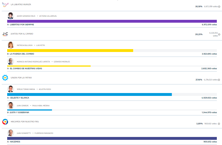 Eso lo transformaba no solo en el candidato más votado de manera individual, sino también que su partido -La Libertad Avanza- era el líder entre las coaliciones.