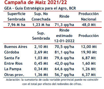 De acuerdo a los datos de la entidad, este año se sembró un 8% más de superficie, pero habrá menos maíz ya que el rinde promedio cae 10 quintales respecto a 2021.