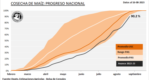 Con el 90% del área ya recolectada, la cosecha de maíz 2023/24 entró en la recta final y desde la Bolsa de Cereales de Buenos Aires destacaron que los últimos lotes están trayendo algo de alivio, dentro de la desazón general por otro cultivo que se vio fuertemente perjudicado por la sequía.