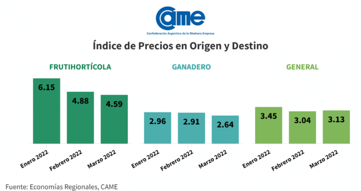 La brecha de precios para los 24 principales productos frutihortícolas y ganaderos que participan de la mesa familiar, de acuerdo a los registros que mensualmente hace la Confederación Argentina de la Mediana Empresa (CAME), subió a 3,13 veces en marzo.