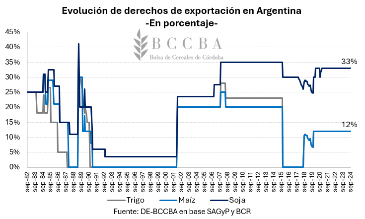La Bolsa de Cereales de Córdoba (BCCBA) analizó el impacto del cobro de retenciones a las exportaciones del sector agropecuario, y lo contextualizó: comparó la dinámica histórica en base a este concepto, Gobierno por Gobierno.