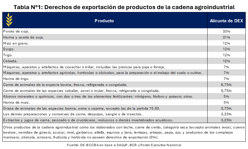 Se trata de un tributo con historia en la Argentina: Con el Plan de Convertibilidad en abril de 1991, se eliminaron los DEX al maíz, el trigo y los subproductos de soja, con excepción del poroto, sobre el cual se estableció una alícuota del 6% y, posteriormente, se reduciría a su mínimo histórico en noviembre de 1992 llegando al 3,5%.
