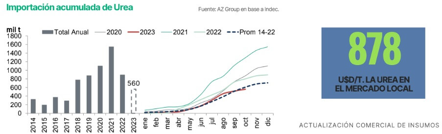 Por el lado de la urea, en octubre se importaron 44.000 toneladas, de acuerdo a estadísticas oficiales y con Egipto como principal origen.