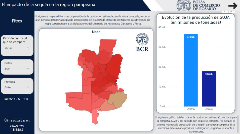 En concreto, la entidad creó un tablero interactivo, que permite visualizar el impacto de la sequía en la producción de los principales cultivos, por regiones.