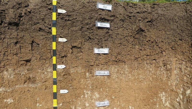 - Ocupando un sector costero adyacente al Río de la Plata y áreas bajas en el este provincial se reconocen suelos del orden Vertisol. Estos suelos poseen granulometría fina (arcillas) y en períodos secos se reconocen por la presencia de grietas en la superficie.