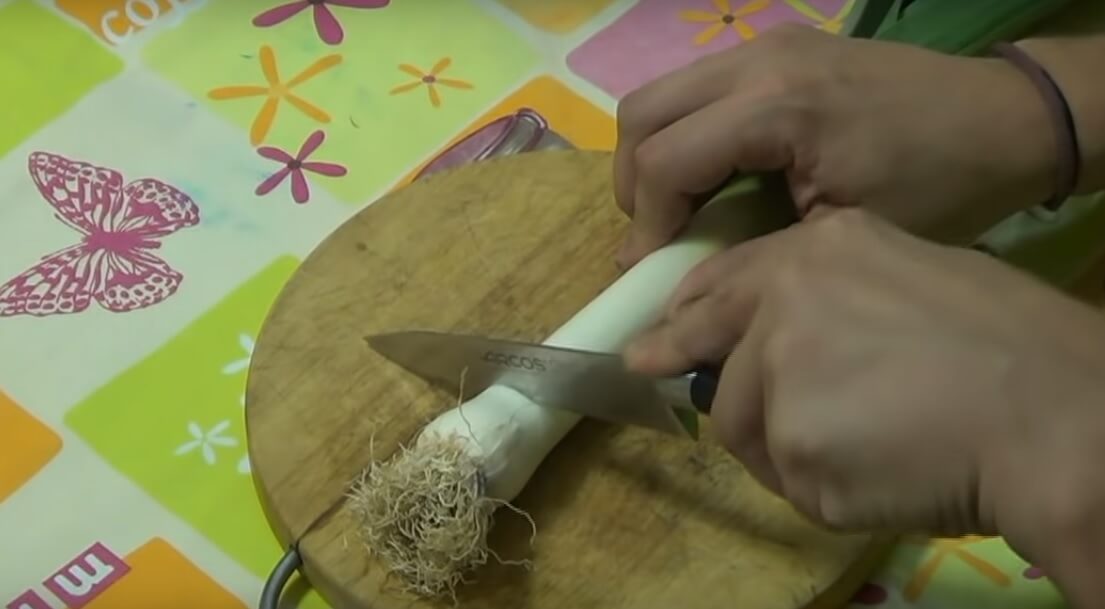 Cortamos a 3 dedos de la base del puerro y ponemos la base en un recipiente con agua que sólo cubra el vegetal hasta la altura de las raíces, sino se va a podrir el tallo. Lo dejamos en un lugar donde reciba buena luz solar y a la semana o dos semanas deberían brotar raíces nuevas y tallos.