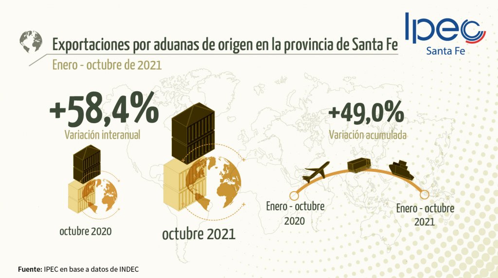Gracias al desempeño del sector agropecuario y los volúmenes de producción de granos de la Argentina, la provincia de Santa Fe aumentó 49% sus exportaciones en los primeros diez meses del año en comparación al mismo período de 2020.