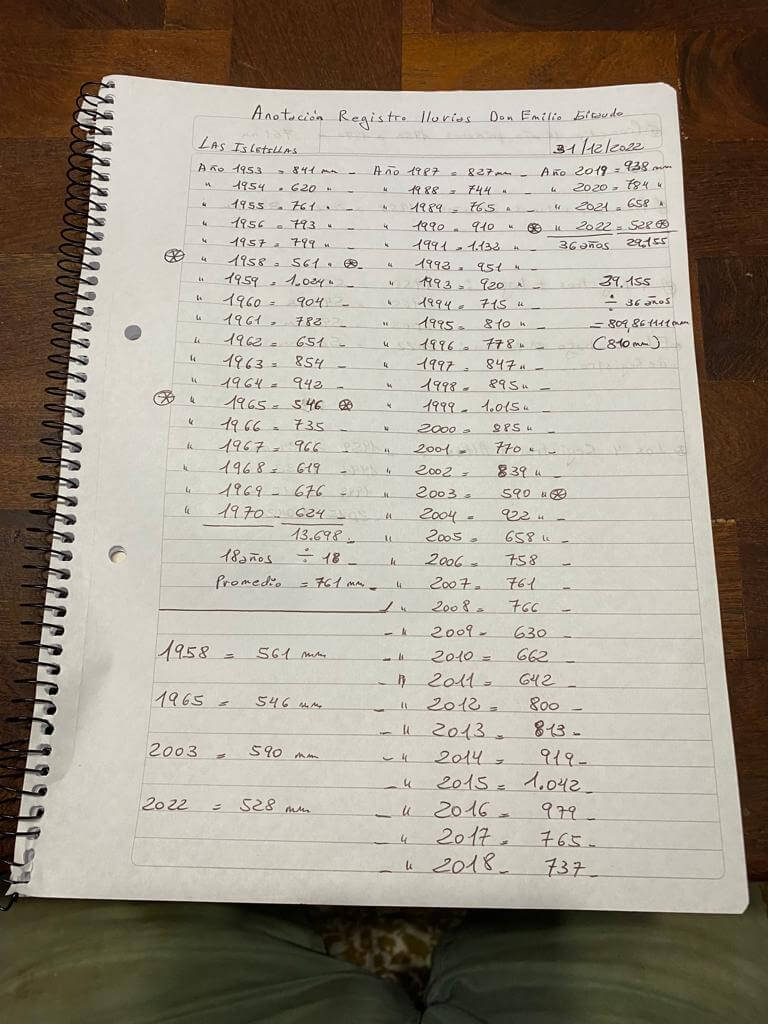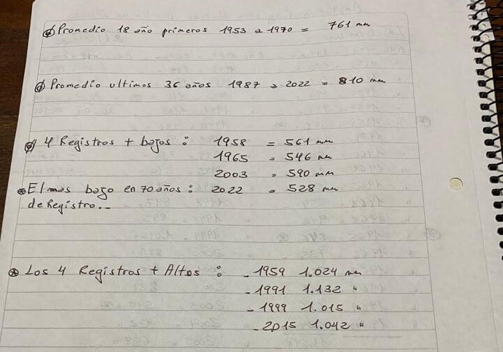 Fue un festejo después de lo que había advertido solo un par de días antes, el 30 de enero: “Mi padre comenzó anotaciones registro lluvias en Octubre 1952! Esta es la más grande sequía de este periodo, 747 meses: 493 mm por todo 2022, de no llover antes de las 24 horas de hoy! Puede llegar a ser un terrible desastre!”.