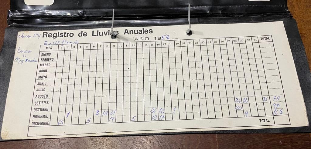 Don Emiliio Giraudo es un ejemplo: en octubre de 1952 comenzó la confección de planillas en las que anotó a mano, de manera mensual, las precipitaciones acumuladas en su campo ubicado en Las Isletillas, en el centro-oeste de Córdoba.