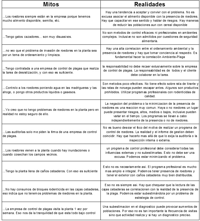 “Ningún programa de control funciona por sí solo, se requiere de una buena articulación de actividades empresa de control de plagas con el cliente” detalló Hoyos, y agregó: “En definitiva, creemos que los roedores no se controlan por el solo hecho de colocar un rodenticida, sino que se necesitan también buenos conocimientos para desterrar los mitos y paradigmas equivocados que, en muchas ocasiones, eclipsan nuestras decisiones y generan conflictos, contaminación y daños”.