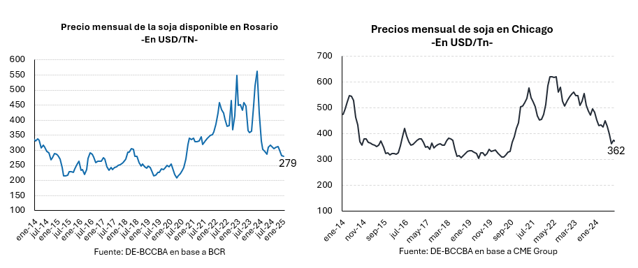 En cuanto a precios, la cotización de la oleaginosa en el mercado local registró un promedio de U$S 279 por tonelada en el mes de enero, un recorte del 16% en la comparación interanual. En el mercado de Chicago -tras el recorte en la producción mundial- las cotizaciones se ubicaron en U$S 372 por tonelada, un aumento del 3% respecto al mes previo.