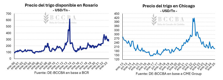 Al echar un vistazo a los precios, en el mercado disponible de Rosario el cereal se posicionó en U$S 189 por tonelada para enero, un 14% por debajo del precio del cereal en enero de 2024.