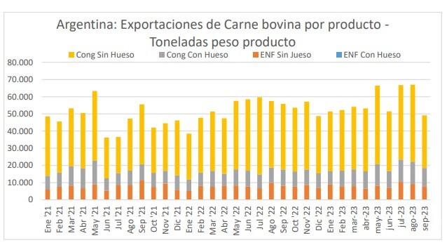 “Las exportaciones de huesos bovinos producto de la despostada también se recortaron con relación al mes de agosto”, remarcaron.