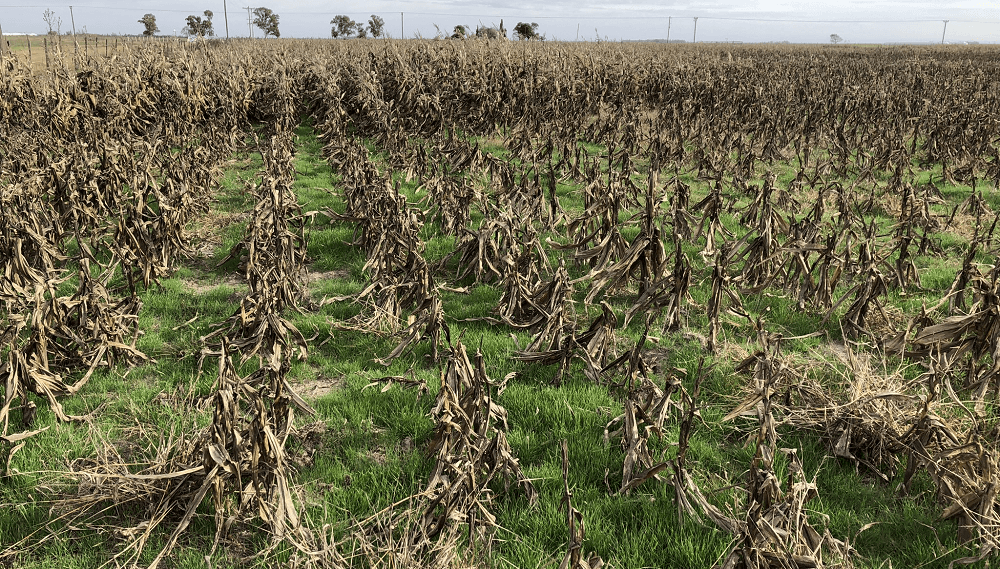 Un lote de maíz afectado por sequía y la helada temprana de febrero. (Imagen de Dante Garciandia)