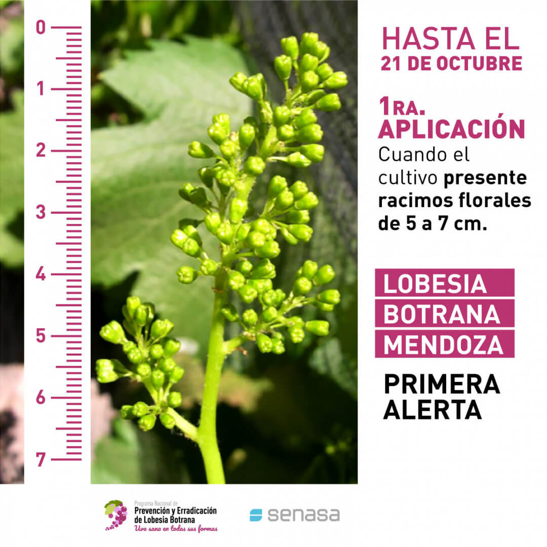 En el marco del Programa Nacional de Prevención y Erradicación de Lobesia botrana (PNPyE Lb), el Servicio Nacional de Sanidad y Calidad Agroalimentaria (Senasa) informó que se encuentra vigente la primera alerta para el control de la polilla de la vid en la provincia de Mendoza.
