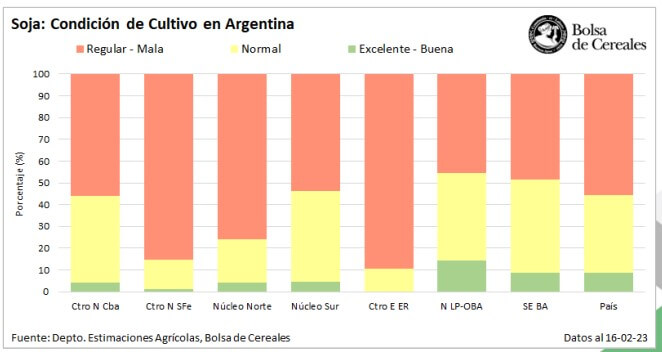 Los reportes semanales de la Bolsa de Cereales de Buenos Aires y de la Bolsa de Comercio de Rosario (BCR) referidos a la marcha de la campaña 2022/23 no paran de arrojar datos preocupantes en relación al devenir de los lotes de soja.
