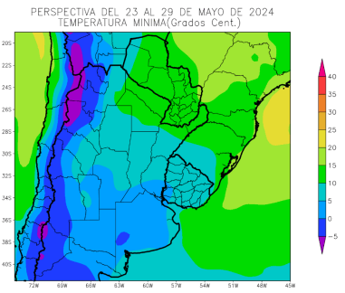 - El este del NOA, el sur de la Región del Chaco, gran parte Corrientes, el norte de Cuyo, el norte de la Región Pampeana y el Uruguay observarán temperaturas mínimas superiores a 5°C, con leve riesgo de heladas localizadas y un amplio foco con valores mayores a 10°C, sobre el norte y otros focos con valores menores.