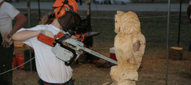 La marca proveedora de máquinas y herramientas como podadoras, cortadoras de césped y motosierras, muchas de ellas vinculadas a la vida cotidiana en el ámbito rural, concentró la mirada de los presentes con sus habituales concursos de destrezas sobre troncos y grandes bloques de madera.
