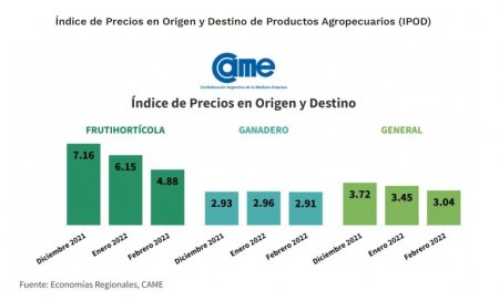 La mejora mensual del Índice de Precios en Origen y Destino (IPOD), como se conoce la referencia que realiza CAME cada mes, considerando las estacionalidades de los productos, ocurrió porque los precios que se le pagaron al productor volvieron a subir por encima de los precios que se le cobraron al consumidor.